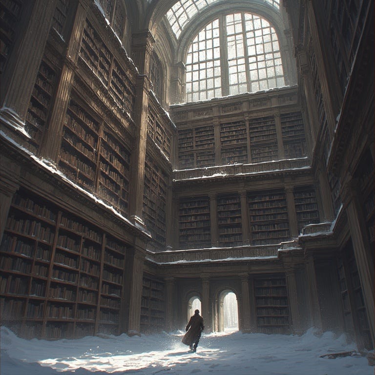 I’d also heard of a third type of group - a group that took the same instinct as the survivalists and added to their core mission one of a future better than the past. They were placing their bets that books would be the one tool to save them from the past, or at the very least, save them from the savagery they feared would take hold. I fell in with them at a university where they took over the library. It was a good position with thick walls and a roof that was miraculously still standing. Some of the books they decided to burn for fuel, but the useful ones they kept - agriculture, engineering, animal husbandry - the kinds of things that brought people out of the middle ages.