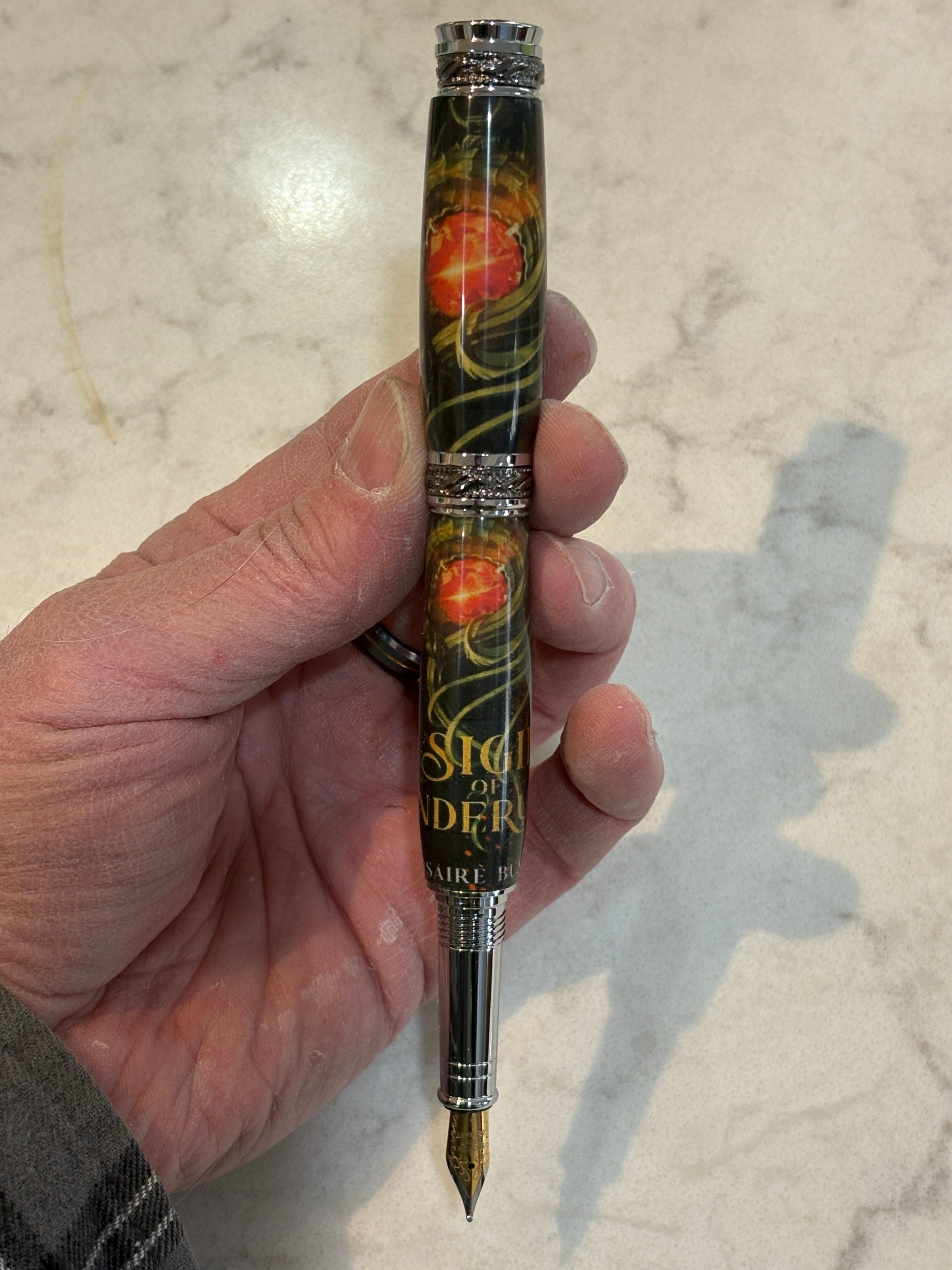 This month I’m also hoping to update my website (www.rosairebushey.com) with some of the pens I make with my lathe. I’ve included a couple images of pens I’ve created using artwork from the Ranger’s Deck series - at the top and of the article and below. I hope you have a chance to look at them on the website - I’d be interested to know your thoughts.